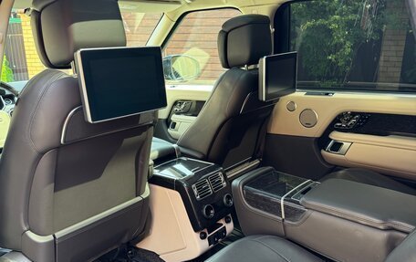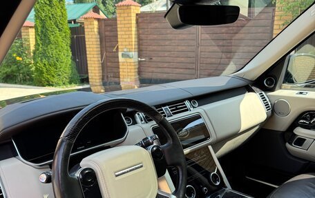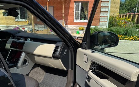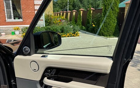 Черный Land Rover Range Rover 2019 года, с пробегом 66 000 километров, один собственник в ПТС. Объем двигателя 3 л, 249 лошадиных сил, дизельный двигатель, автоматическая коробка передач, полный привод. Опции: подогрев передних сиде...